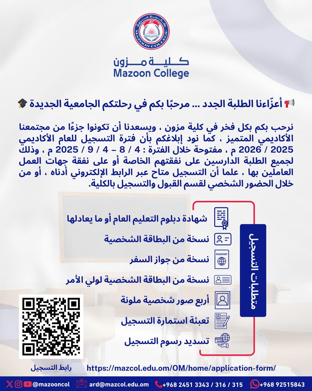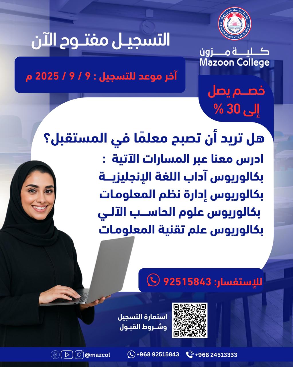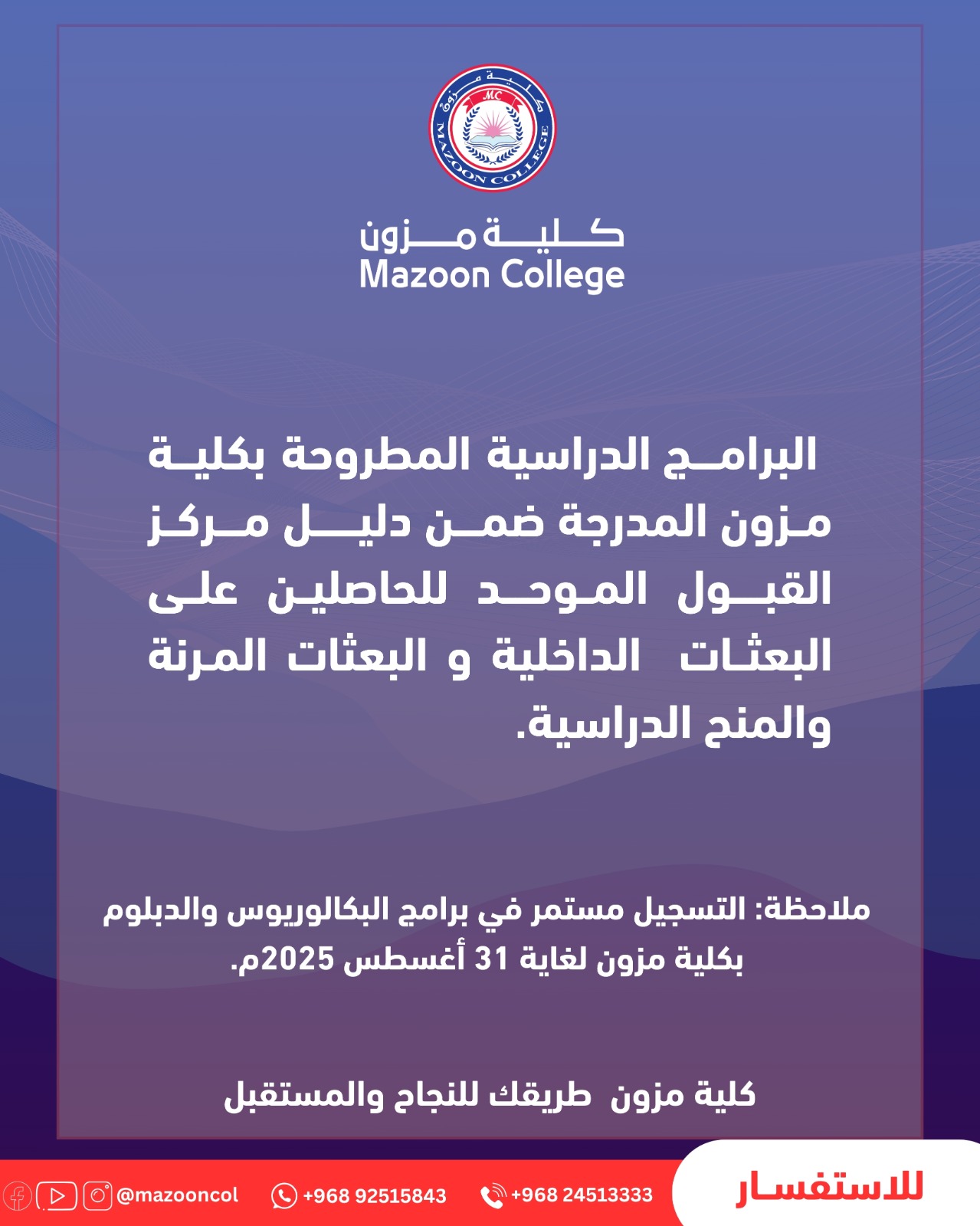 To any student considering Mazoon College, I can confidently say that it is an institution committed to student success, not just within the classroom but far beyond it. It is a place where potential is nurtured, opportunities are abundant, and futures are shaped.”